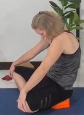 - Platziere einen Block in der schmalsten Breite zwischen den Knien und einen zweiten zwischen den Waden.
