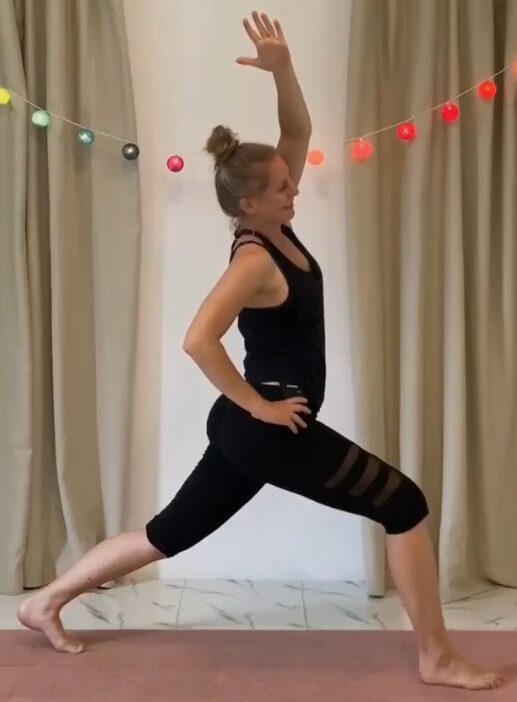 4. Flankenstreckung im Krieger 1 (Variation von Parsvakonasana)