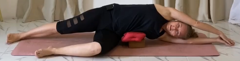 5. Passive Flankendehnung auf der Seite mit Bolster (Side Bolster Stretch)