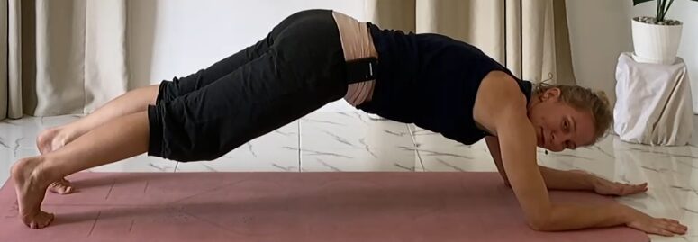 In manchen Haltungen – etwa im herabschauenden Hund – kann es sein, dass du ein leichtes Sog- oder Vakuumgefühl in der Bauchdecke wahrnimmst. Das ist ein Zeichen dafür, dass deine tiefe Bauchmuskulatur (Transversus abdominis) aktiv ist und deine Wirbelsäule stabil hält. Genau diese Aktivierung macht Drehhaltungen so wertvoll für deinen Rücken.